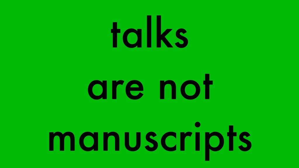 The rules of designing a presentation are different than designing a manuscript. What does a presentation look like if you approach it the way you design a text document?